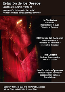 Los invita a participar de la inauguración de la instalación colectiva “La Tentación”, el día 2 de junio de 2012 a las 19 horas, en el espacio La Jaula del Centro Cultural Estación de los Deseos, dando inicio a este nuevo ámbito dedicado a instalaciones.